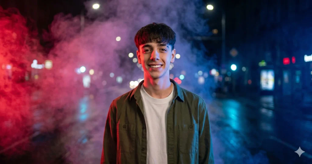 For example, instead of a red and blue smoke studio, you could create a neon cyberpunk portrait, a dark luxury editorial look, or even a golden cinematic spotlight scene.